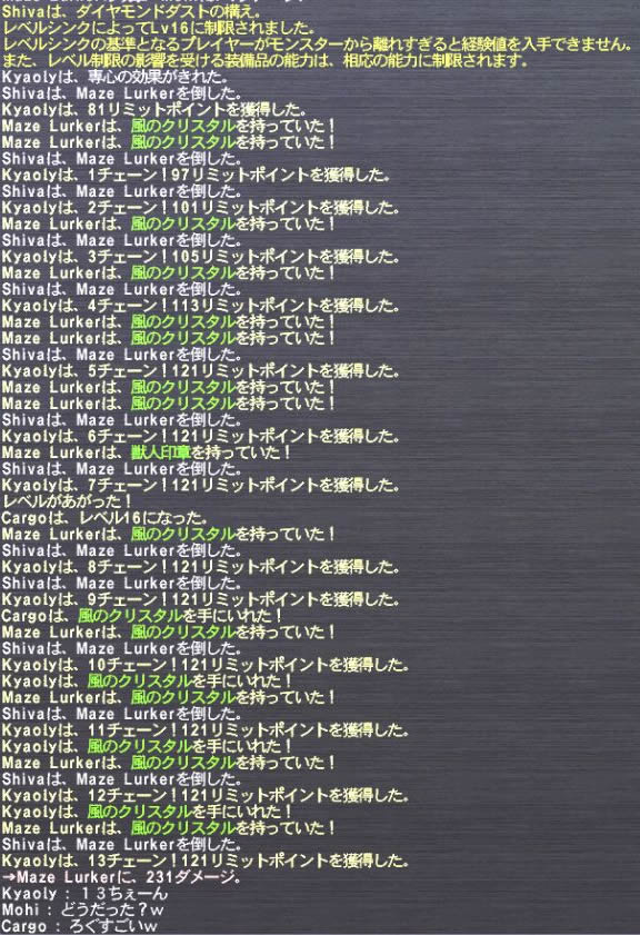 2メリポと、ナイトが14→16まで@1経験値に。